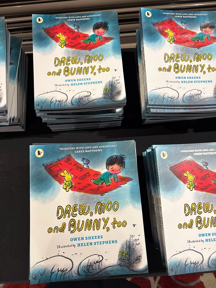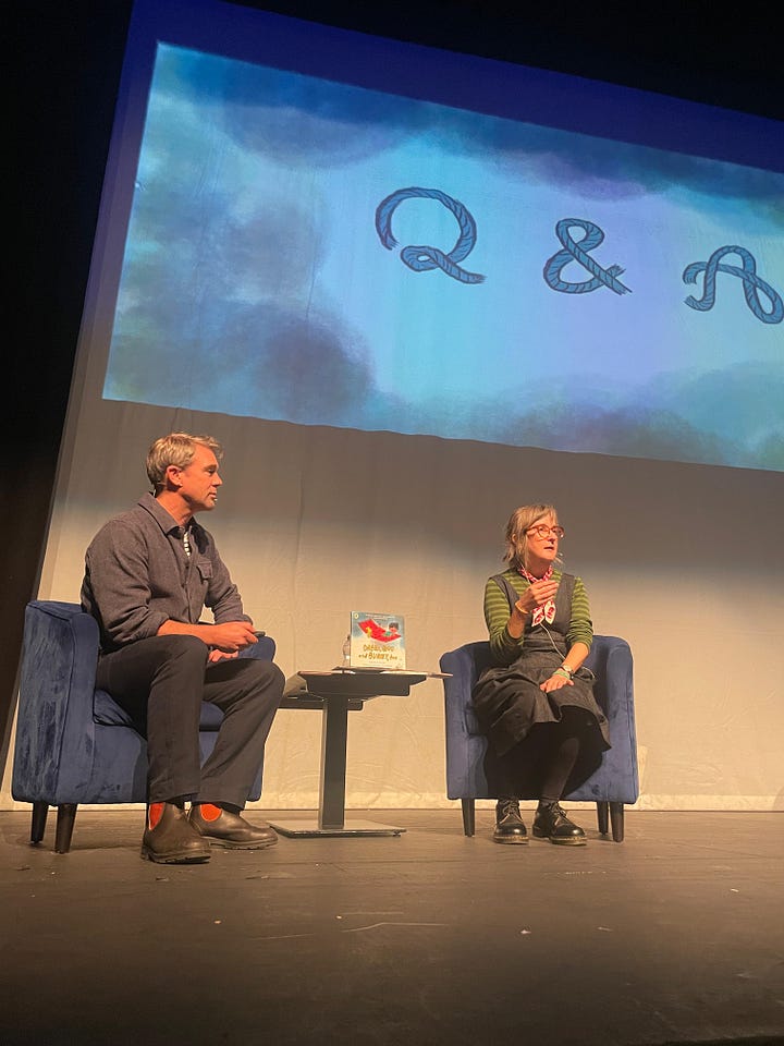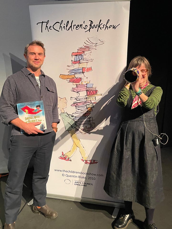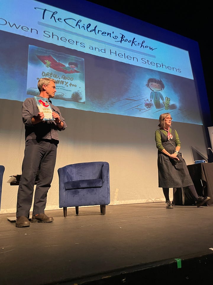 Us authors and illustrators do our stuff. Most of my shows have been with the poet, Owen Sheers, who wrote a book that I illustrated a few years ago. He reads while I draw live— and other fun stuff.